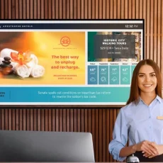 نمایشگرهای لمسی Clicksc برای اتاقهای کنفرانس و سالنهای اجتماعات بسیار مناسب هستند و به دلیل داشتن تکنولوژی بهروز، کیفیت نمایش بهتر (4K)،سیستمعامل و امکانات نرمافزاری جایگزینی مناسب برای ویدئو پروژکتورهای قدیمی می باشند.
