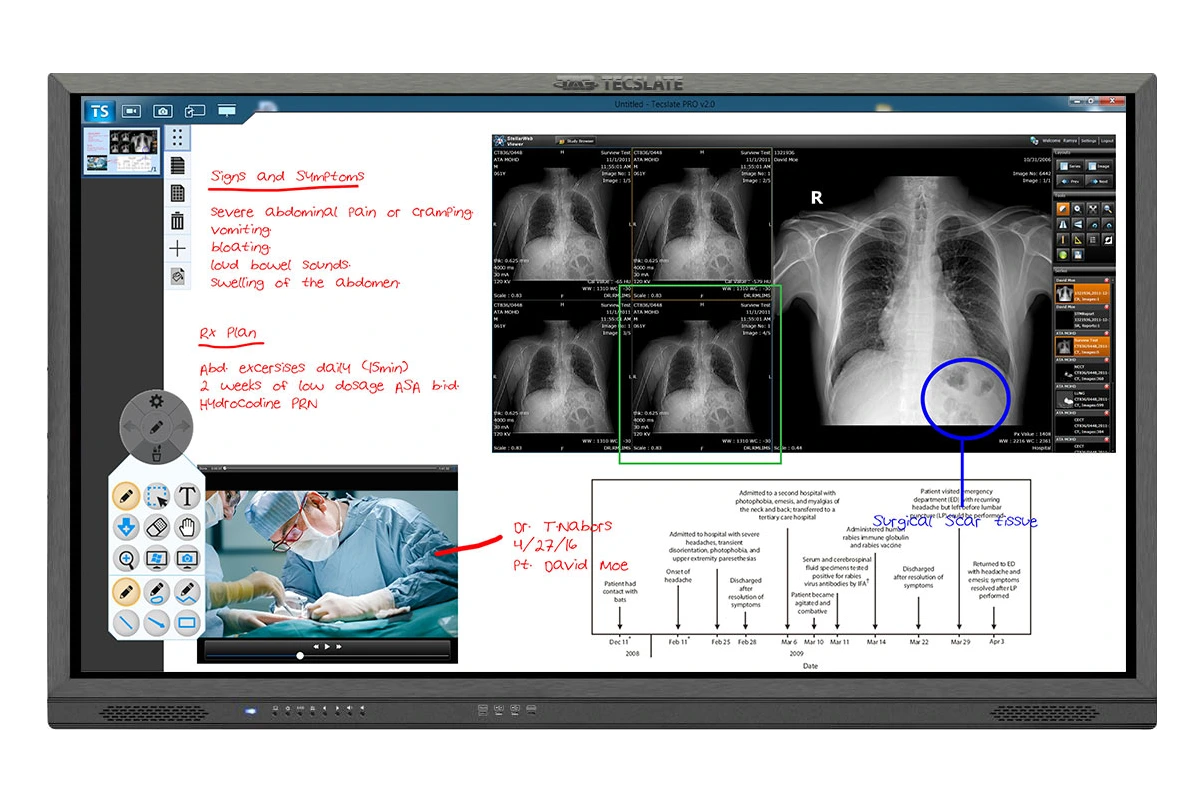 در مراکز پزشکی، پنل‌های تعاملی کلیک برای ارائه اطلاعات به بیماران، برگزاری جلسات آموزشی و کنفرانس‌های پزشکی استفاده می‌شوند. با قابلیت‌هایی مانند دوربین داخلی با کیفیت بالا و میکروفون ۸ کاناله، این پنل‌ها برای برگزاری جلسات آنلاین و ویدیو کنفرانس‌ها بسیار مناسب هستند. همچنین، نرم‌افزار Whiteboard اختصاصی امکان یادداشت‌برداری و ارائه اطلاعات پزشکی را به شیوه‌ای جذاب و تعاملی فراهم می‌کند.