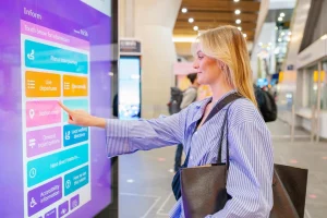 فضاهای عمومی و اطلاع‌رسانی: اطلاع‌رسانی، تبلیغات و راهنمایی در فرودگاه‌ها، ایستگاه‌های قطار و مراکز تفریحی.