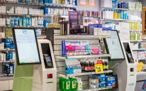 در داروخانهها، کیوسکهای سلف سرویس کلیک امکان ثبت سفارشات دارو و محصولات بهداشتی را فراهم میکنند. مشتریان میتوانند با استفاده از صفحه نمایش لمسی، محصولات مورد نظر خود را انتخاب کرده و هزینهی آنها را پرداخت کنند. این کیوسکها همچنین میتوانند اطلاعات مربوط به داروها و دستورالعملهای مصرف را در اختیار مشتریان قرار دهند.